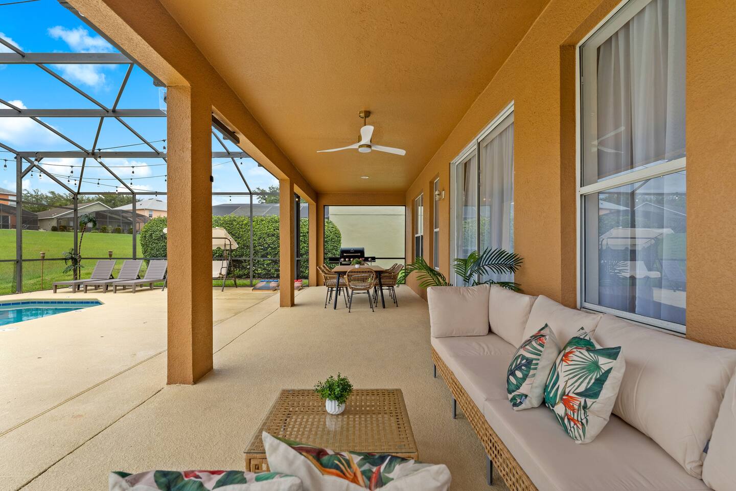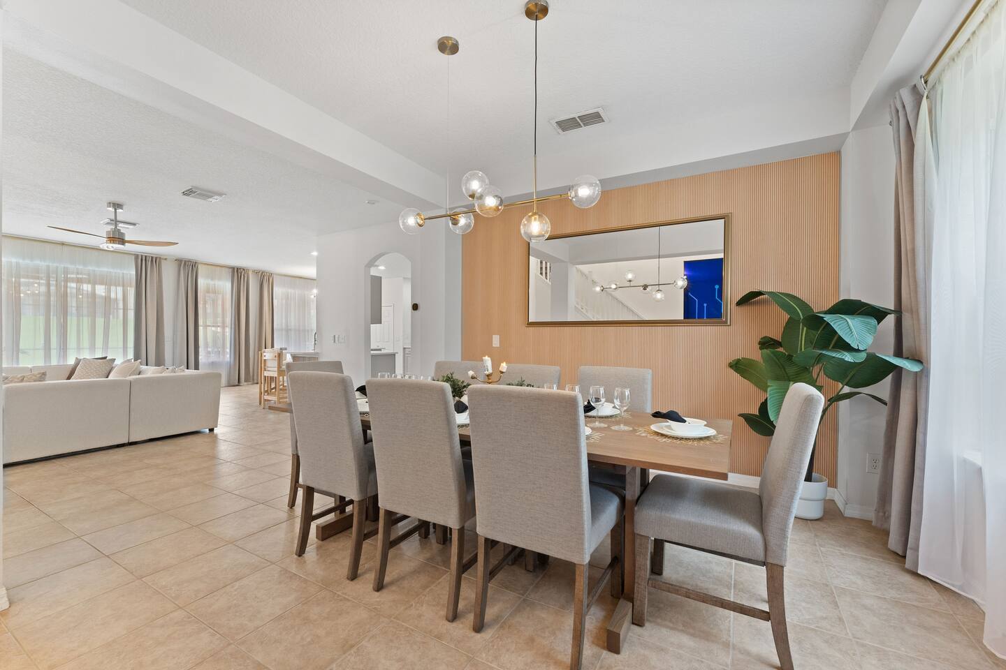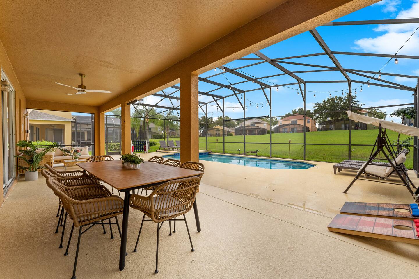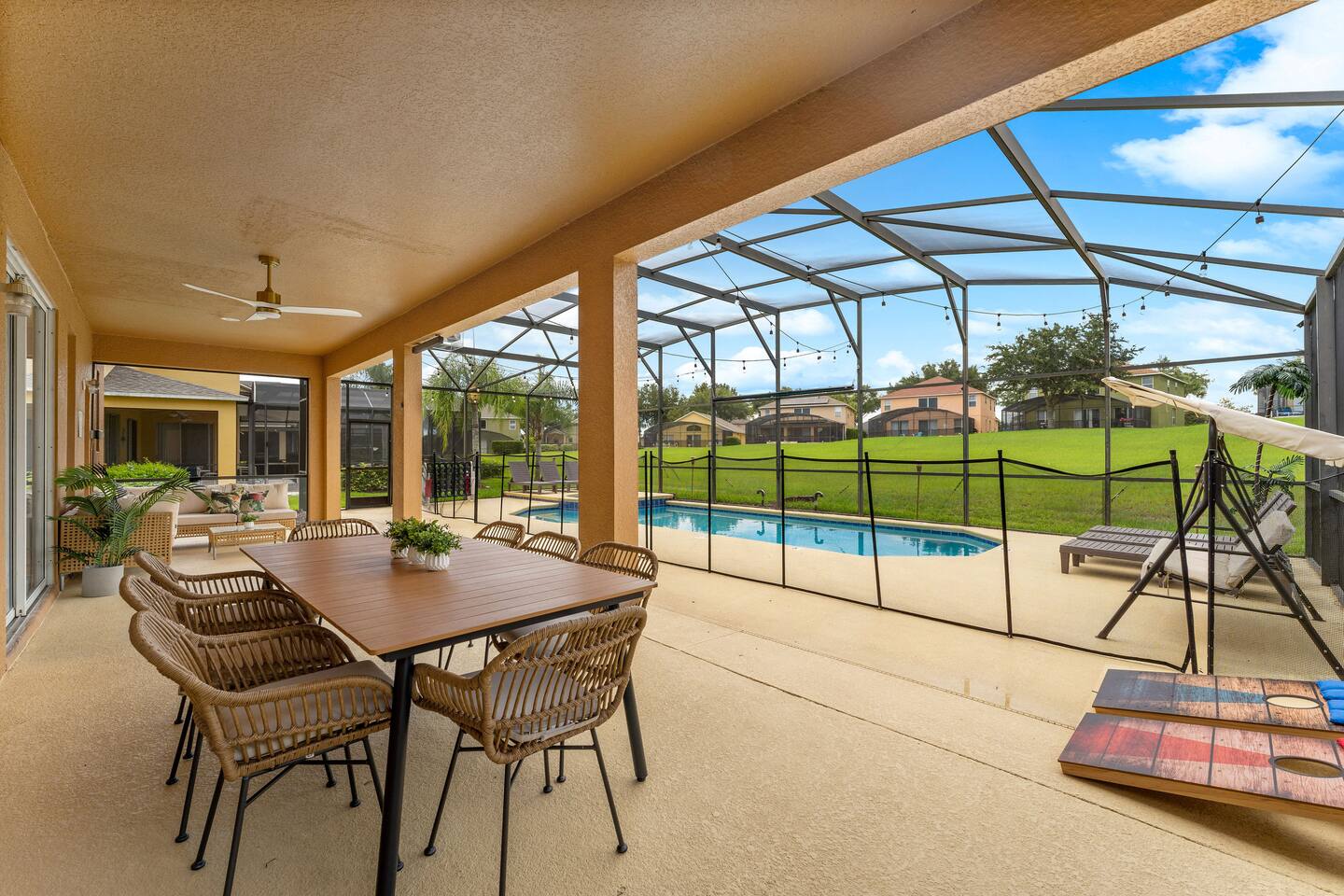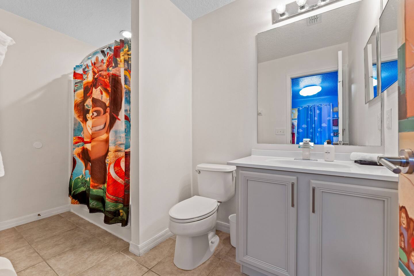 🛖 Tiki Hut over the Reef hosted by the Whimsy Getaways website is a one-of-a-kind villa boasting a mind-blowing 9D 360 degree rotating VR Machine with thrilling rollercoaster rides! Two incredible fully immersive game rooms provide endless entertainment, while 3 fully immersive themed bedrooms will spark your imagination. Subtle themed touches ensure adults enjoy the whimsy too! This spacious villa is the largest floor plans within 4 miles to Disney, is perfect for families seeking an unforgettable escape. Themed Rooms Beyond Your Wildest Dreams! Personalized Service and Care: As the owners of this special home, we're dedicated to providing you with an exceptional experience. Expect a warm welcome, attentive service, and a home that feels like your own. Rent directly from us and discover the difference. Despicable Me Game Room: ‣ 📺 75" Roku TV with 🎮Nintendo Switch ‣ 🏒 Air Hockey Table ‣ 🏍️ Fast and Furious Superbike Racing Simulator, ‣ 🏀 Basketball Shooting Game ‣ 🪓 Kids Friendly Axe Throwing and 🎯 Darts Tron Game Room: ️ ‣ 🥽 Mind Blowing 9D 360-degree Rotating Virtual Reality Machine with thrilling rides! It's like having your own amusement park inside the house! ‣ 🕹️ Retro Arcade Game Machines 🛖 Moana Bedroom ‣ Drift off to dreamland in Moana's beachside Tiki Hut with Moana, Maui, Grandma, Heihei and Pua. ‣ Slide 🛝 down into the beach from the top of the Tiki hut 🏰 Cinderella Bedroom ‣ Sleep in a Fairytale in Cinderella's Carriages among Cinderella, Prince and animal friends. 🏟️ Mario and Donkey Kong Stadium Bedroom: ‣ Watch the battle between Mario and Donkey Kong in Donkey Kong's Stadium! Additional In-house Entertainment: ‣ 🧩 Extensive collection of family-friendly board games ‣ 🎙️Karaoke machine ‣ 📺 Movie night awaits on the 75" Roku TV with smart TV in each room ⛱️ Screened Patio: ‣ 🏊 Private Pool and Spa (Pool and Spa heated for $40/day) ‣ 📽️ 150 inch outdoor projector ‣ 🥩 Complementary use of BBQ Grill (propane not included) ‣ 🔴 Giant Connect 4 and Corn Hole 🧑🍳 Ratatouille inspired Gourmet Kitchen: ‣ 🍽️ Fully stocked kitchen with stainless steel appliances ‣ ☕ Coffee bar 🧑🍼Family-Friendly Amenities: ‣ 🛏️ Pack n play ‣ 🪑High chair 🐶 Dog-Friendly Amenities: ‣ 🐾 Food & water bowls ‣ 🗑️ Waste bags ‣ 🧼 Cleaning supplies ‣ 🔒 Crates (limited availability for rental, inquire during booking) 🏖️ FREE Access to the Resort Amenities with your stay ‣ 🏊 Pool ‣ 🫧 Hot Tub ‣ 🏋️♀️ Fitness Center ‣ Sauna ‣ 🍸 Tiki Bar ‣🖥️ Business Center ‣ 🏞️ Nature Trail ‣ 🛝 Playgrounds ‣ 🪇 Daily Resort Activities Sports Courts: ‣ 🎾 Pickle ball & Tennis Courts ‣ 🏀 Basketball Court ‣ 🏐 Volleyball Court ‣ ⛳ Putting Green ‣ 🏸 Sports Equipment Rental available at the Welcome Center. Additional Perks: ‣ 👮♀️ 24/7 Guarded Gated Community: ‣ 🎢 Disney® is just 4 miles away, with Margaritaville, Universal Studios, and other top attractions easily accessible. ‣ 🧹 5-Stars Cleanliness Guarantee: Arrive to sparkling clean or we'll re-clean concerns.