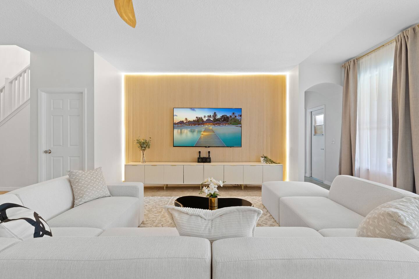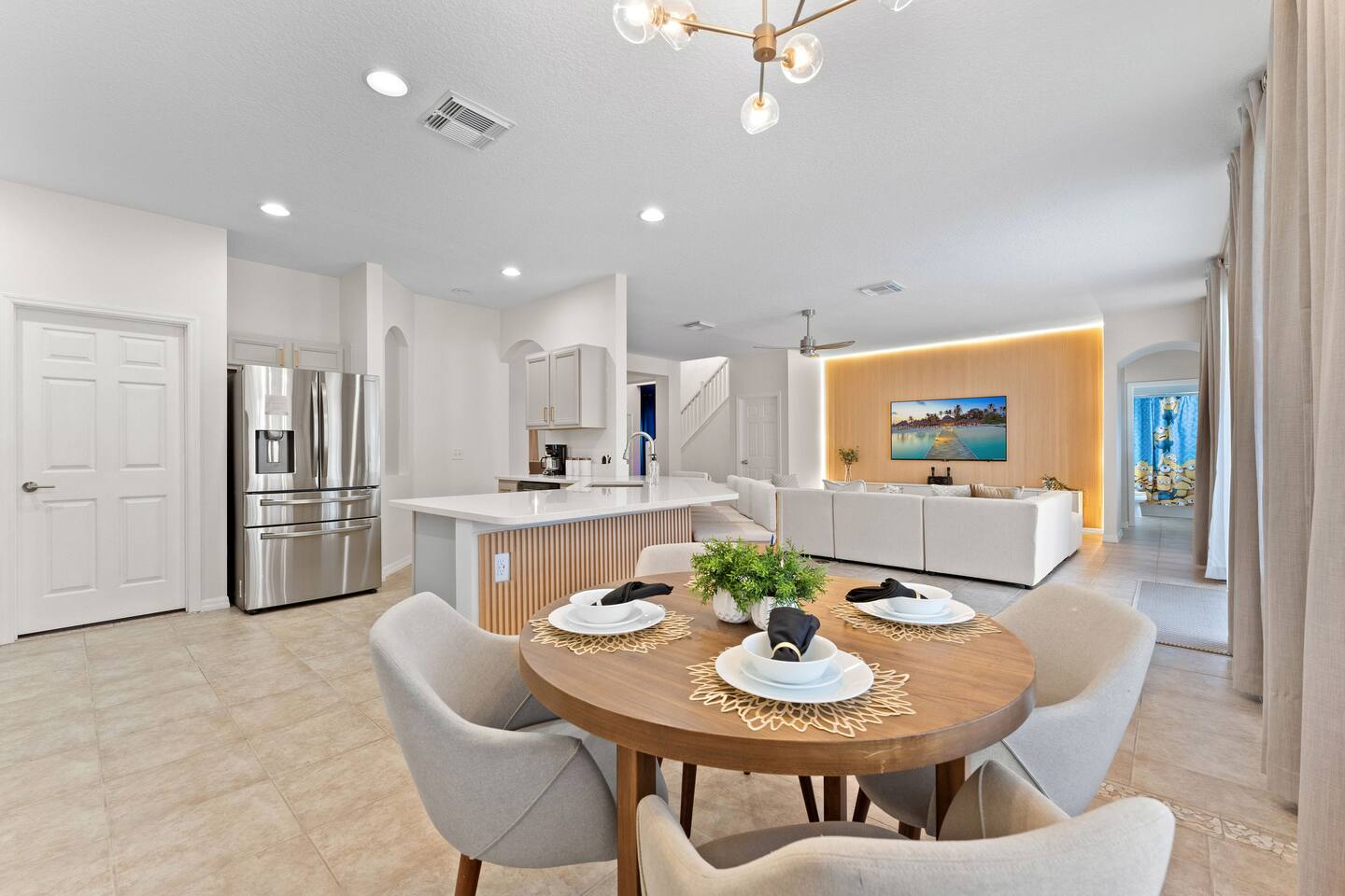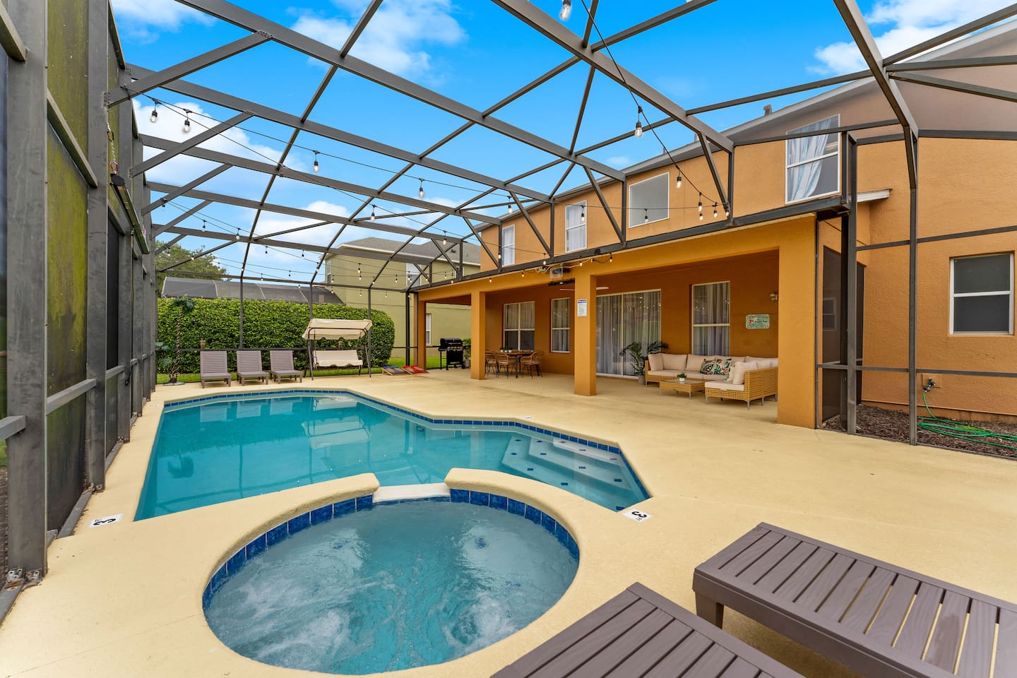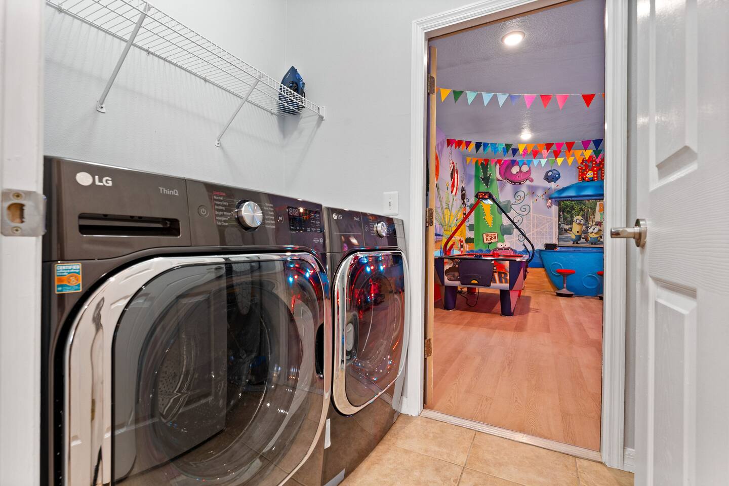 🛖 Tiki Hut over the Reef hosted by the Whimsy Getaways website is a one-of-a-kind villa boasting a mind-blowing 9D 360 degree rotating VR Machine with thrilling rollercoaster rides! Two incredible fully immersive game rooms provide endless entertainment, while 3 fully immersive themed bedrooms will spark your imagination. Subtle themed touches ensure adults enjoy the whimsy too! This spacious villa is the largest floor plans within 4 miles to Disney, is perfect for families seeking an unforgettable escape. Themed Rooms Beyond Your Wildest Dreams! Personalized Service and Care: As the owners of this special home, we're dedicated to providing you with an exceptional experience. Expect a warm welcome, attentive service, and a home that feels like your own. Rent directly from us and discover the difference. Despicable Me Game Room: ‣ 📺 75" Roku TV with 🎮Nintendo Switch ‣ 🏒 Air Hockey Table ‣ 🏍️ Fast and Furious Superbike Racing Simulator, ‣ 🏀 Basketball Shooting Game ‣ 🪓 Kids Friendly Axe Throwing and 🎯 Darts Tron Game Room: ️ ‣ 🥽 Mind Blowing 9D 360-degree Rotating Virtual Reality Machine with thrilling rides! It's like having your own amusement park inside the house! ‣ 🕹️ Retro Arcade Game Machines 🛖 Moana Bedroom ‣ Drift off to dreamland in Moana's beachside Tiki Hut with Moana, Maui, Grandma, Heihei and Pua. ‣ Slide 🛝 down into the beach from the top of the Tiki hut 🏰 Cinderella Bedroom ‣ Sleep in a Fairytale in Cinderella's Carriages among Cinderella, Prince and animal friends. 🏟️ Mario and Donkey Kong Stadium Bedroom: ‣ Watch the battle between Mario and Donkey Kong in Donkey Kong's Stadium! Additional In-house Entertainment: ‣ 🧩 Extensive collection of family-friendly board games ‣ 🎙️Karaoke machine ‣ 📺 Movie night awaits on the 75" Roku TV with smart TV in each room ⛱️ Screened Patio: ‣ 🏊 Private Pool and Spa (Pool and Spa heated for $40/day) ‣ 📽️ 150 inch outdoor projector ‣ 🥩 Complementary use of BBQ Grill (propane not included) ‣ 🔴 Giant Connect 4 and Corn Hole 🧑🍳 Ratatouille inspired Gourmet Kitchen: ‣ 🍽️ Fully stocked kitchen with stainless steel appliances ‣ ☕ Coffee bar 🧑🍼Family-Friendly Amenities: ‣ 🛏️ Pack n play ‣ 🪑High chair 🐶 Dog-Friendly Amenities: ‣ 🐾 Food & water bowls ‣ 🗑️ Waste bags ‣ 🧼 Cleaning supplies ‣ 🔒 Crates (limited availability for rental, inquire during booking) 🏖️ FREE Access to the Resort Amenities with your stay ‣ 🏊 Pool ‣ 🫧 Hot Tub ‣ 🏋️♀️ Fitness Center ‣ Sauna ‣ 🍸 Tiki Bar ‣🖥️ Business Center ‣ 🏞️ Nature Trail ‣ 🛝 Playgrounds ‣ 🪇 Daily Resort Activities Sports Courts: ‣ 🎾 Pickle ball & Tennis Courts ‣ 🏀 Basketball Court ‣ 🏐 Volleyball Court ‣ ⛳ Putting Green ‣ 🏸 Sports Equipment Rental available at the Welcome Center. Additional Perks: ‣ 👮♀️ 24/7 Guarded Gated Community: ‣ 🎢 Disney® is just 4 miles away, with Margaritaville, Universal Studios, and other top attractions easily accessible. ‣ 🧹 5-Stars Cleanliness Guarantee: Arrive to sparkling clean or we'll re-clean concerns.
