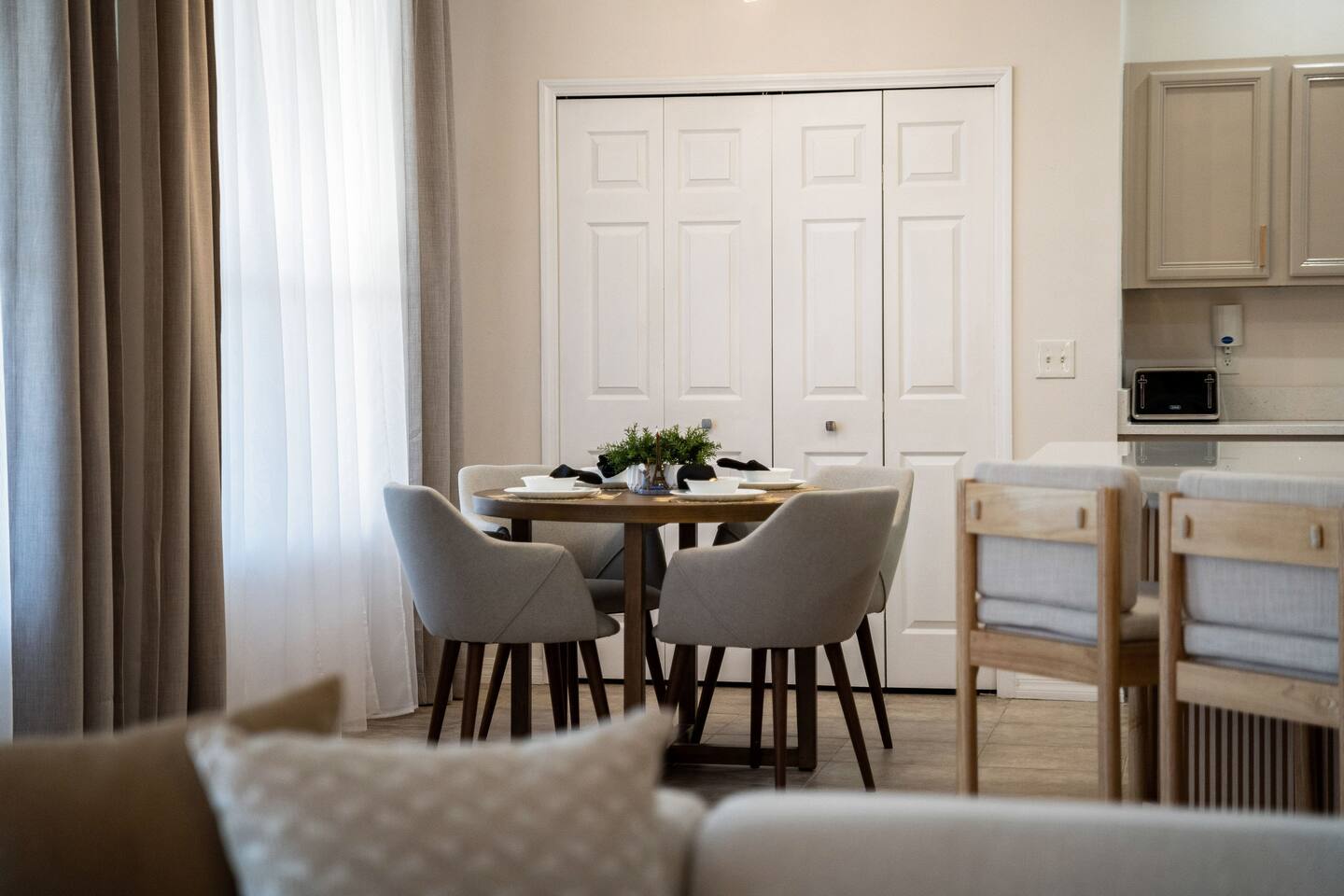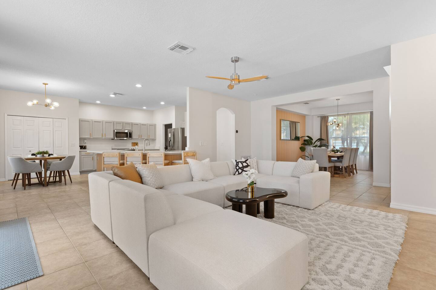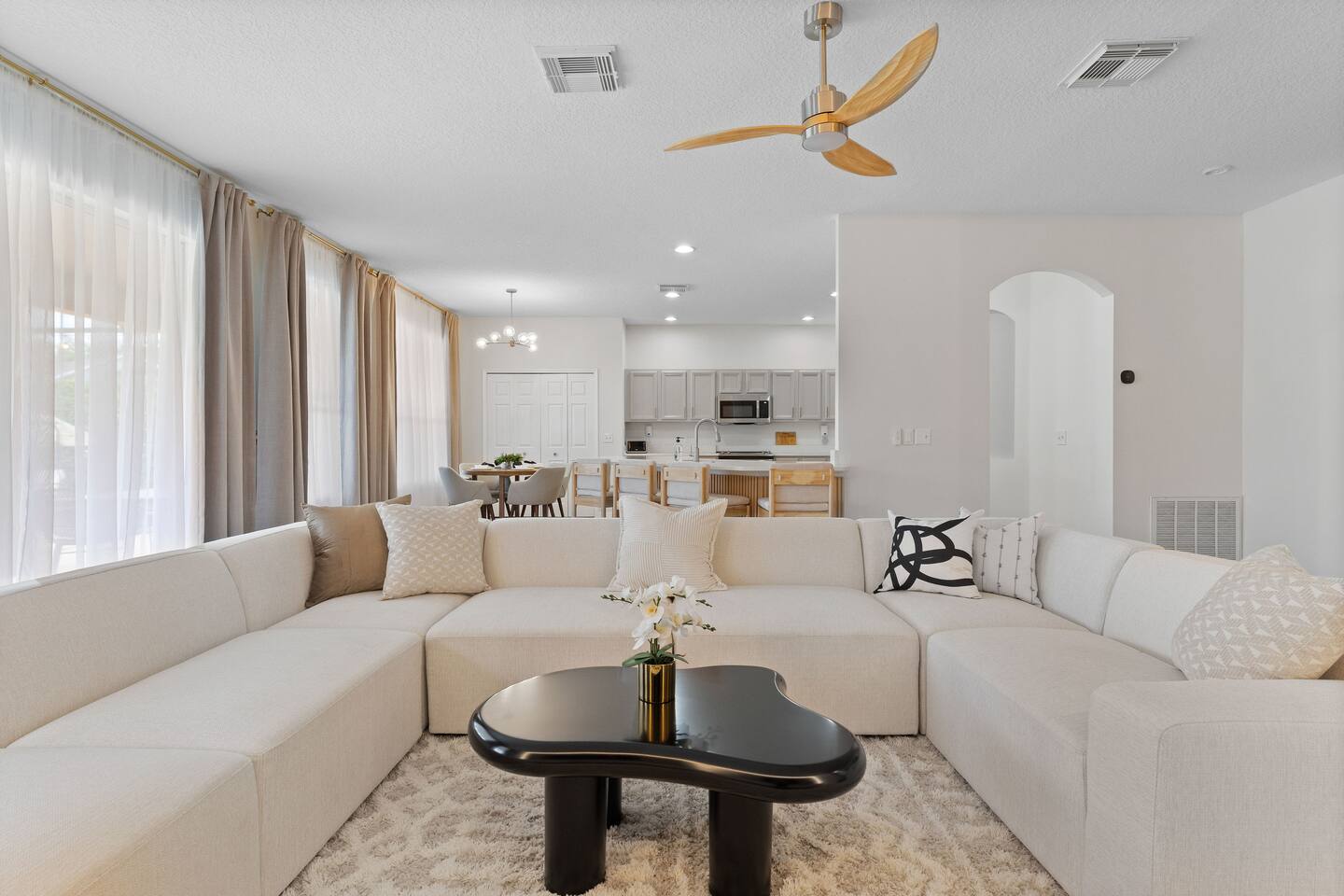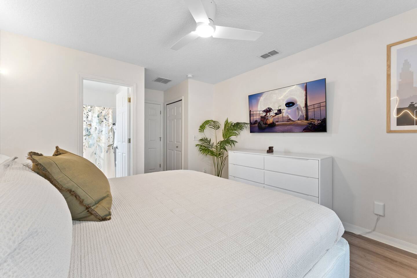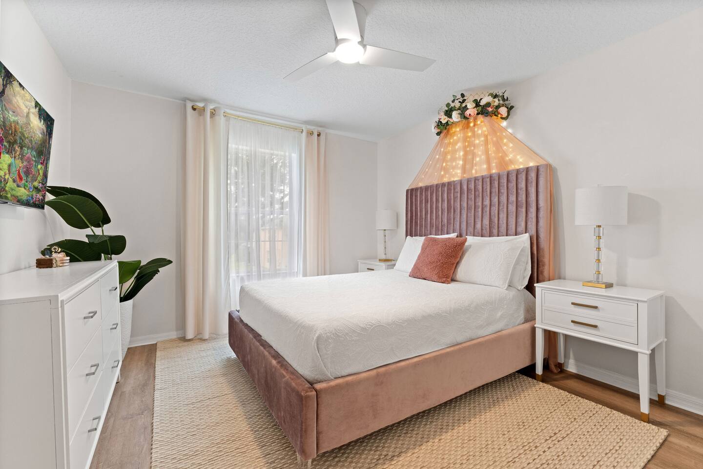 🛖 Tiki Hut over the Reef hosted by the Whimsy Getaways website is a one-of-a-kind villa boasting a mind-blowing 9D 360 degree rotating VR Machine with thrilling rollercoaster rides! Two incredible fully immersive game rooms provide endless entertainment, while 3 fully immersive themed bedrooms will spark your imagination. Subtle themed touches ensure adults enjoy the whimsy too! This spacious villa is the largest floor plans within 4 miles to Disney, is perfect for families seeking an unforgettable escape. Themed Rooms Beyond Your Wildest Dreams! Personalized Service and Care: As the owners of this special home, we're dedicated to providing you with an exceptional experience. Expect a warm welcome, attentive service, and a home that feels like your own. Rent directly from us and discover the difference. Despicable Me Game Room: ‣ 📺 75" Roku TV with 🎮Nintendo Switch ‣ 🏒 Air Hockey Table ‣ 🏍️ Fast and Furious Superbike Racing Simulator, ‣ 🏀 Basketball Shooting Game ‣ 🪓 Kids Friendly Axe Throwing and 🎯 Darts Tron Game Room: ️ ‣ 🥽 Mind Blowing 9D 360-degree Rotating Virtual Reality Machine with thrilling rides! It's like having your own amusement park inside the house! ‣ 🕹️ Retro Arcade Game Machines 🛖 Moana Bedroom ‣ Drift off to dreamland in Moana's beachside Tiki Hut with Moana, Maui, Grandma, Heihei and Pua. ‣ Slide 🛝 down into the beach from the top of the Tiki hut 🏰 Cinderella Bedroom ‣ Sleep in a Fairytale in Cinderella's Carriages among Cinderella, Prince and animal friends. 🏟️ Mario and Donkey Kong Stadium Bedroom: ‣ Watch the battle between Mario and Donkey Kong in Donkey Kong's Stadium! Additional In-house Entertainment: ‣ 🧩 Extensive collection of family-friendly board games ‣ 🎙️Karaoke machine ‣ 📺 Movie night awaits on the 75" Roku TV with smart TV in each room ⛱️ Screened Patio: ‣ 🏊 Private Pool and Spa (Pool and Spa heated for $40/day) ‣ 📽️ 150 inch outdoor projector ‣ 🥩 Complementary use of BBQ Grill (propane not included) ‣ 🔴 Giant Connect 4 and Corn Hole 🧑🍳 Ratatouille inspired Gourmet Kitchen: ‣ 🍽️ Fully stocked kitchen with stainless steel appliances ‣ ☕ Coffee bar 🧑🍼Family-Friendly Amenities: ‣ 🛏️ Pack n play ‣ 🪑High chair 🐶 Dog-Friendly Amenities: ‣ 🐾 Food & water bowls ‣ 🗑️ Waste bags ‣ 🧼 Cleaning supplies ‣ 🔒 Crates (limited availability for rental, inquire during booking) 🏖️ FREE Access to the Resort Amenities with your stay ‣ 🏊 Pool ‣ 🫧 Hot Tub ‣ 🏋️♀️ Fitness Center ‣ Sauna ‣ 🍸 Tiki Bar ‣🖥️ Business Center ‣ 🏞️ Nature Trail ‣ 🛝 Playgrounds ‣ 🪇 Daily Resort Activities Sports Courts: ‣ 🎾 Pickle ball & Tennis Courts ‣ 🏀 Basketball Court ‣ 🏐 Volleyball Court ‣ ⛳ Putting Green ‣ 🏸 Sports Equipment Rental available at the Welcome Center. Additional Perks: ‣ 👮♀️ 24/7 Guarded Gated Community: ‣ 🎢 Disney® is just 4 miles away, with Margaritaville, Universal Studios, and other top attractions easily accessible. ‣ 🧹 5-Stars Cleanliness Guarantee: Arrive to sparkling clean or we'll re-clean concerns.