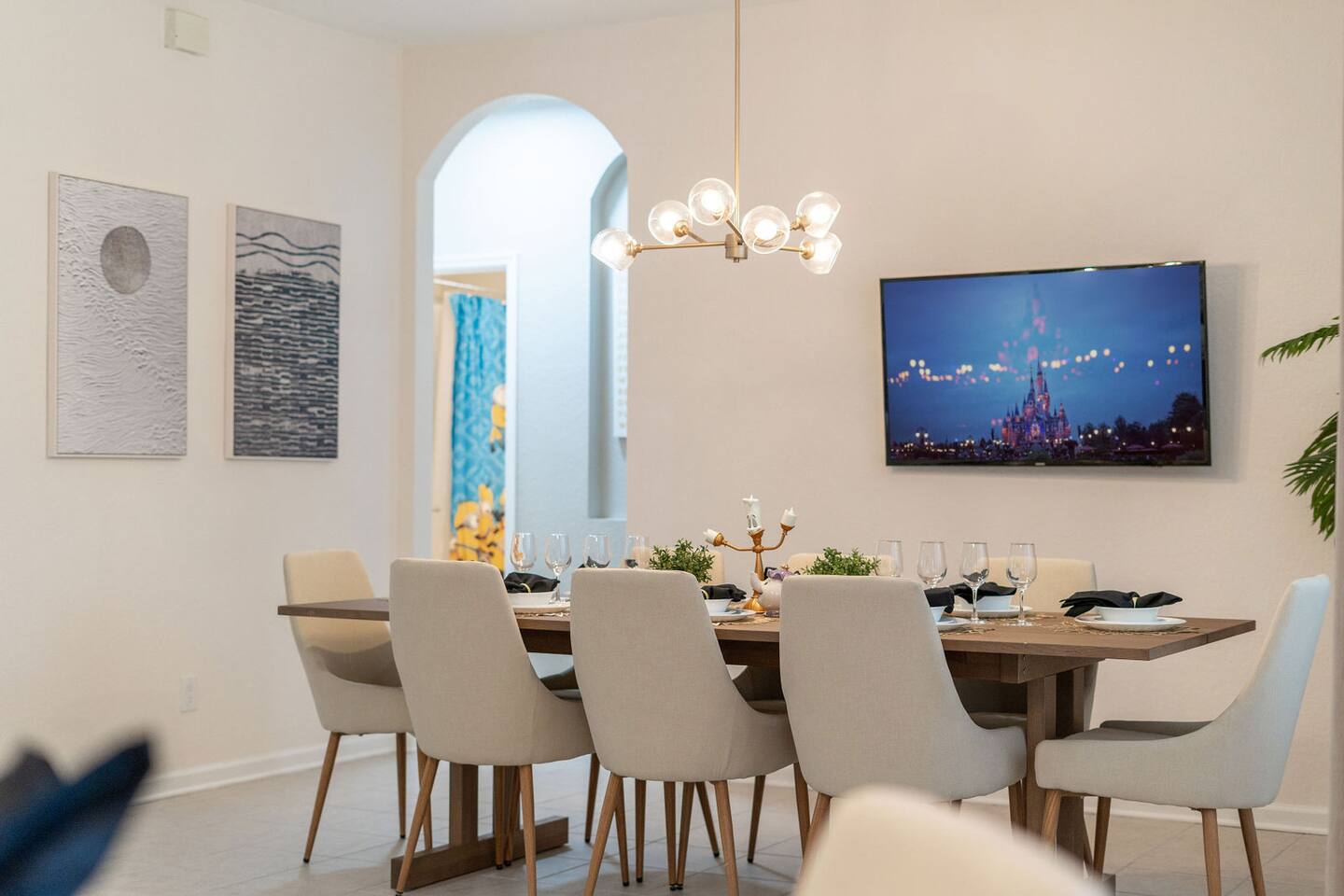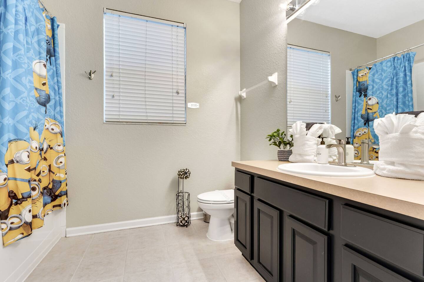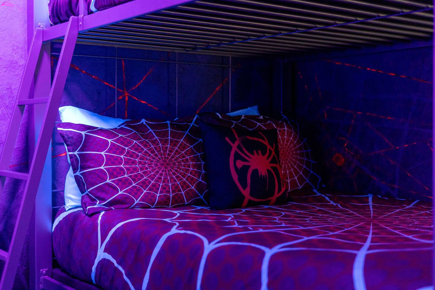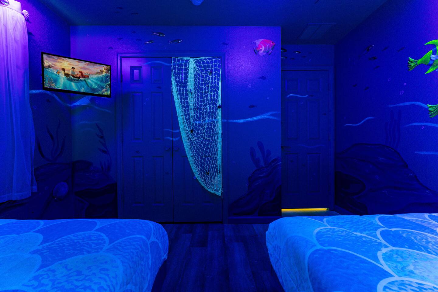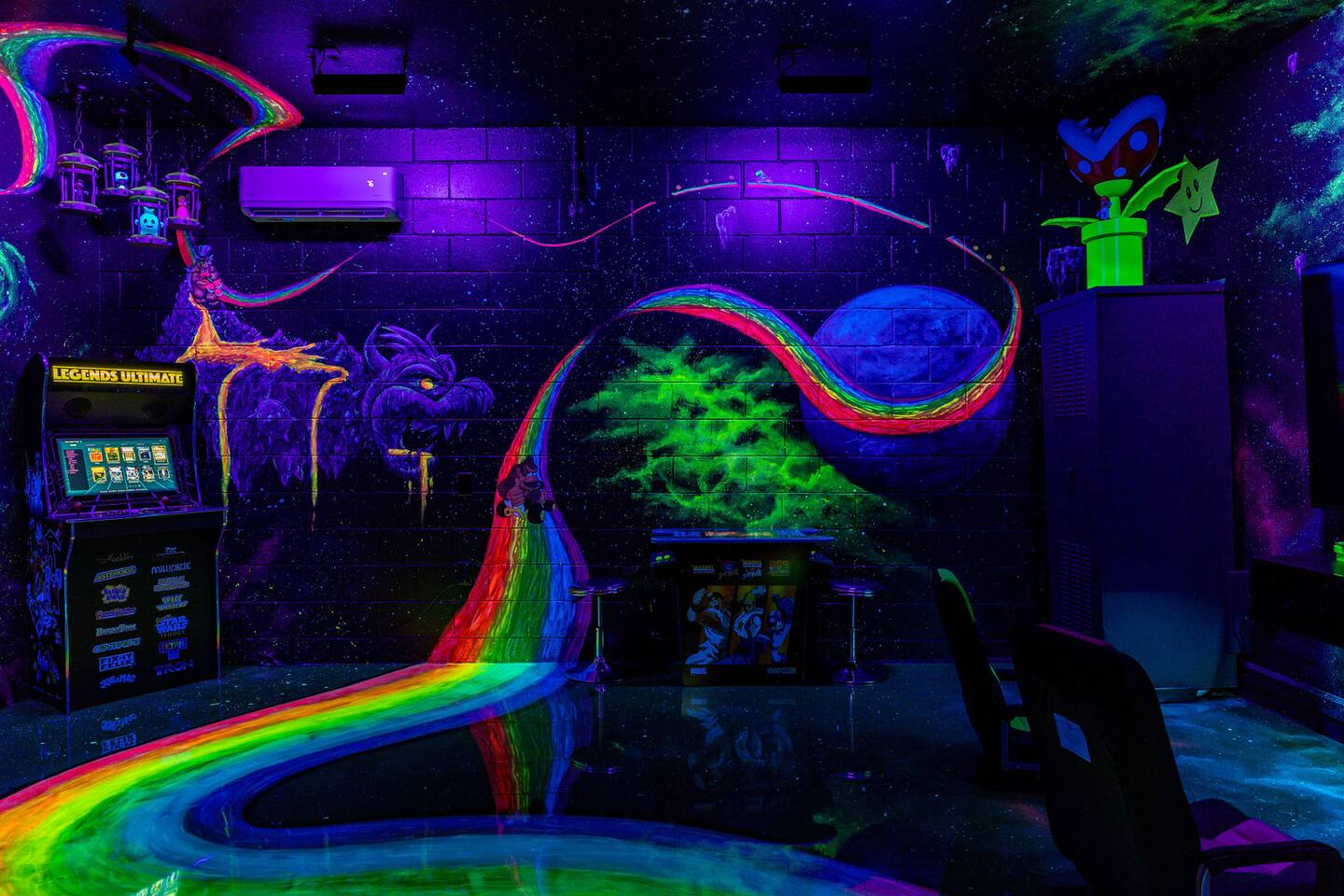 Race with Mario & friends on the Cosmic Rainbow! Video Walkthrough: https://www.youtube.com/watch?v=L3-kLuvDcc8 🏞️ Resort Clubhouse with Pool, Hot Tub, Water Slides, Arcade, Movie Theatre, Gym, Tennis, Basketball, Volleyball, Ping Pong, Pickleball, Park 🌌 Immersive Worlds: 🌈VR in Mario's Rainbow Bridge Arcade, 🧜♀️drift off in Ariel's underwater bedroom, 🕸️swing across the Spiderverse's action-packed bedroom 🍽️ Chef's Kitchen & Poolside Fun: Whip up feasts, chill by the heated pool 🎢 Minutes to Disney & Universal Studios! 🐾 Dog friendly