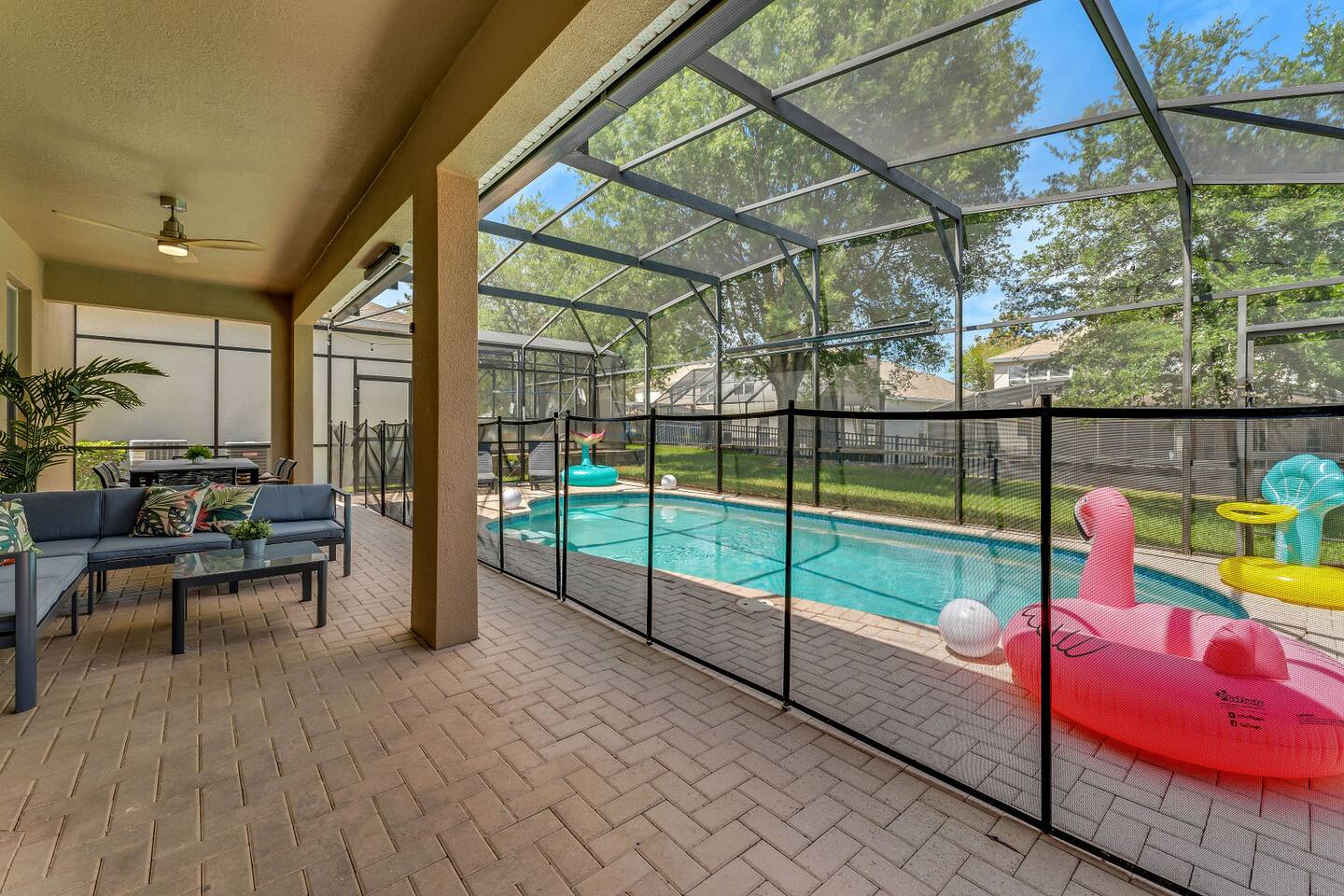 Unleash your inner hero at 🌈Mario's Cosmic Rainbow in Windsor Hills! This vibrant haven, lovingly crafted by the 🛖Whimsy Getaways website, is your gateway to Disney magic and beyond. Whether you're a family chasing thrills, gamers on a retro quest, or friends seeking an unforgettable escape, 🌈Mario's Cosmic Rainbow has something for everyone. Personalized Service and Care: As the owners of this special home, we're dedicated to providing you with an exceptional experience. Expect a warm welcome, attentive service, and a home that feels like your own. Rent directly from us and discover the difference. 🌈 Mario Game Room: ‣ 📺 75" Roku TV with 🎮Nintendo Switch ‣ 🥽 Virtual Reality ‣ 🏀 Basketball Shooting Game ‣ 🕹️ Retro Arcade Game Machines ‣ 🪓 Kids Friendly Axe Throwing and 🎯 Darts 🧜♀️ Little Mermaid Bedroom: ‣ 🐠 Drift off under shimmering seashells in Ariel's 🫧underwater haven 🕸️ Spiderverse Bedroom: ‣ 🕷️ Swing through dimensions in the action-packed Spiderverse bedroom! Additional In-house Entertainment: ‣ 🎳 Mini Bowling Alley ‣ 🧩 Extensive collection of family-friendly board games ‣ 🎙️Karaoke machine ‣ 📺 Movie night awaits on the 70" Roku TV with Roku TV in each room ⛱️ Screened Patio: ‣ 🏊 Private pool with heat (HEATED at a small charge, please message me) ‣ 📽️ 150 inch outdoor projector ‣ 🥩 Free BBQ Grill Rental ($150 value, propane not included) ‣ 🕳️ Corn hole ‣ 🔴 Giant Connect 4 ‣ 🌊 Pool floats and toys 🧑🍳 Gourmet Kitchen: ‣ 🍽️ Fully stocked kitchen with stainless steel appliances ‣ ☕ Tea and Coffee bar with Keurig pods 🧑🍼Family-Friendly Amenities: ‣ 🛏️ Pack n play + Jogging stroller ‣ 🪑High chair 🐶 Dog-Friendly Amenities: ‣ 🐾 Food & water bowls ‣ 🗑️ Waste bags ‣ 🧼 Cleaning supplies ‣ 🔒 Crates (limited availability for rental, inquire during booking) 🏖️ FREE Access to the Resort Amenities with your stay 🌊 Windsor Hills AquaVenture Water Park: ‣ 🎢 2 large dueling slides + 2 smaller slides ‣ 💦 Giant splash pad ‣ 🏊 Zero-entry 140,000-gallon lagoon pool ‣ 🫧 Hot Tub ‣ 🏋️♀️ Fitness Center ‣ 🚿 Shower/Changing Facilities ‣ 🏝️ Ample Outdoor Lounge Seating ‣ 🍿 Movie Theater 🎮 Game Room: ‣ 🕹️ Classic arcade games ‣ 🎱 Pool table ‣ 🏒Air hockey ‣ 🏓 Ping pong Sports Courts: ‣ 🎾 Pickle ball & Tennis Courts ‣ 🏀 Basketball Court ‣ 🏐 Volleyball Court ‣ 🏓 Ping Pong Table ‣ ⛳ Putting Green ‣ 🏸 Sports Equipment Rental available at the Welcome Center. Additional Perks: ‣ 👮♀️ 24/7 Guarded Gated Community: ‣ 🔋 EV/TESLA Chargers ‣ 🎢 Disney® is just 3 miles away, with Margaritaville, Universal Studios, and other top attractions easily accessible. ‣ 🧹 5-Stars Cleanliness Guarantee: Arrive to sparkling clean or we'll re-clean concerns. *** Please Note: The Windsor Hills Resort splash pad and waterslides are scheduled for refurbishment from January 5 through February 13, 2026 and will be closed during this timeframe. The resort pool, hot tub and all other facilities remain open.